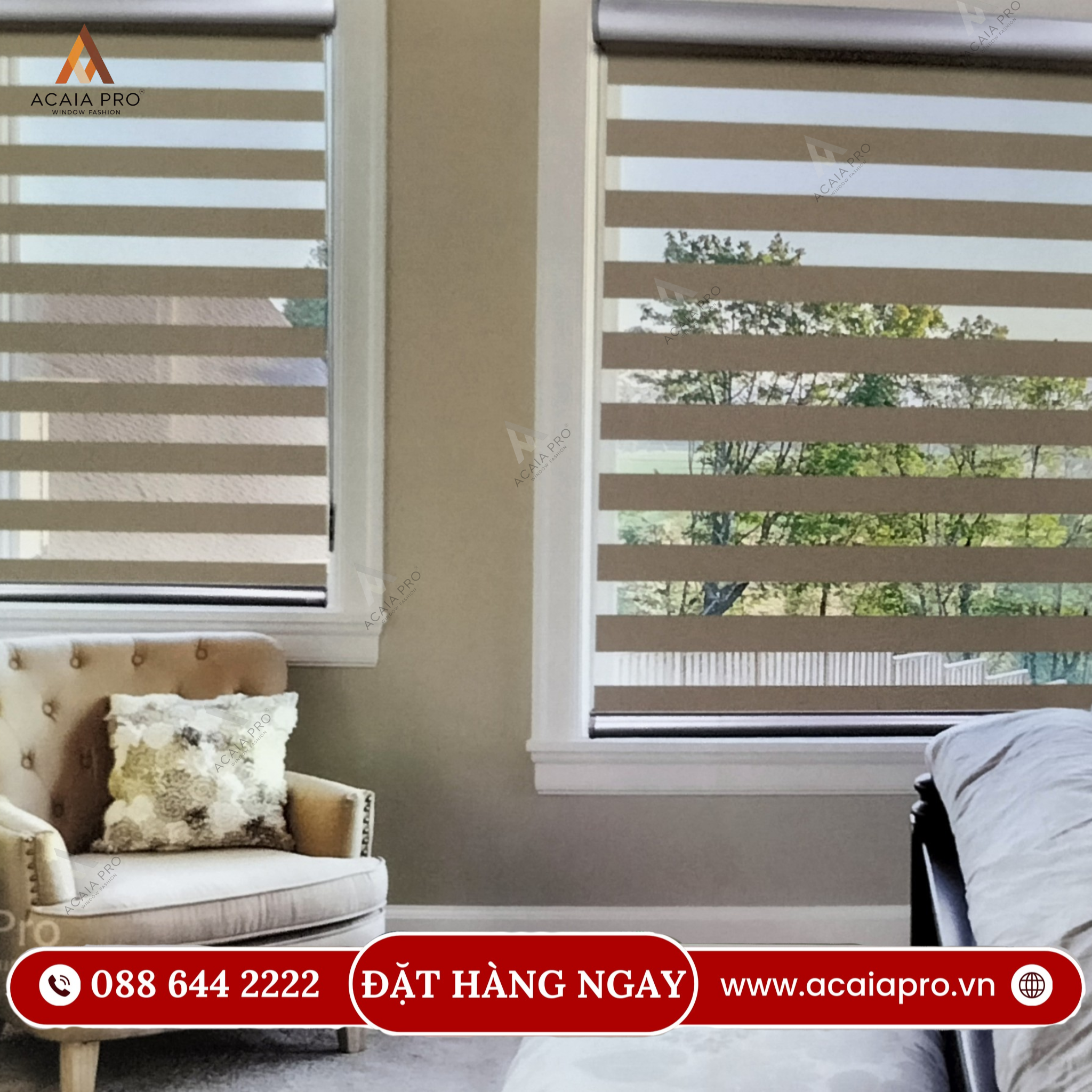 Mành combi với hai lớp vải tạo thành những nan xen kẽ, là một giải pháp hoàn hảo để điều chỉnh ánh sáng.